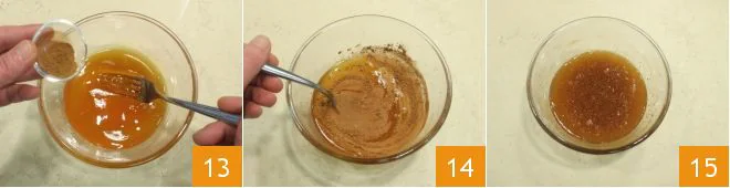 flavor the sauce with ground cinnamon 13, mix the mixture (14-15) and pass it through a fine-mesh strainer to eliminate any lumps and set the sauce aside.