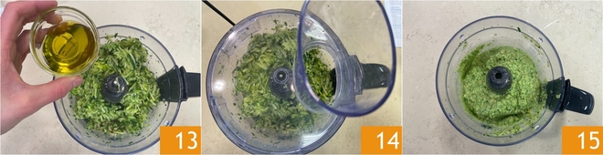 Pour in the extra virgin olive oil 13 and pulse the processor again for a few seconds 14. You should obtain a rustic but smooth consistency 15.