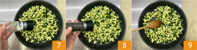 Season with salt 7 and pepper 8 and cook over medium heat for 4-5 minutes 9.