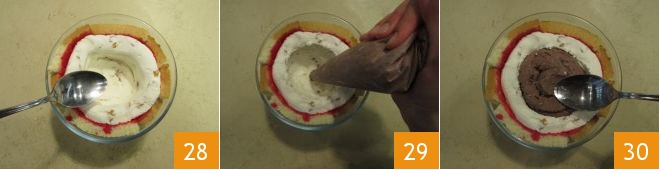 which you will widen and smooth using a spoon 28. Then place the ricotta and chocolate cream inside the newly created hole 29 and level the surface with a spoon 30.
