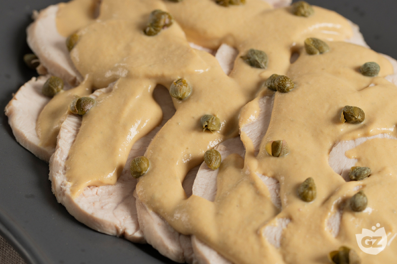 - Garnish with the tonnato sauce and some capers. Serve and enjoy.