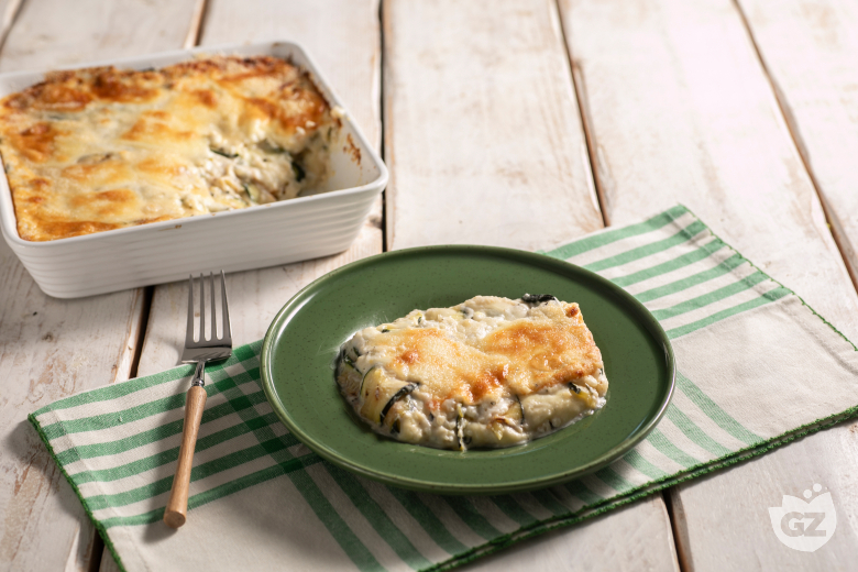 - Finish with a final layer of zucchini, a generous coating of béchamel, and a last handful of Grana Padano.